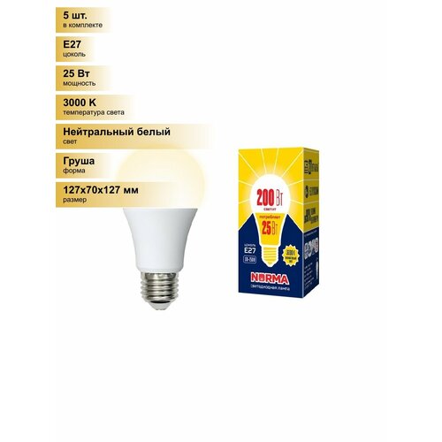 (5 шт.) Светодиодная лампочка Volpe NORMA ЛОН A70 E27 25W(2000lm) 3000K 2K 70×127 матовая LED-A70-25W/3000K/E27/FR/NR Нейтральный белый. Цоколь E27: сравнение цен, характеристики, фото, актуальное наличие и цены.