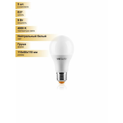 (5 шт.) Светодиодная лампочка Wolta лампа св/д ЛОН A60 E27 9W(800lm) 4000K 4K 4K 110×60 25S60BL9E27 Нейтральный белый. Цоколь E27: сравнение цен, характеристики, фото, актуальное наличие и цены.