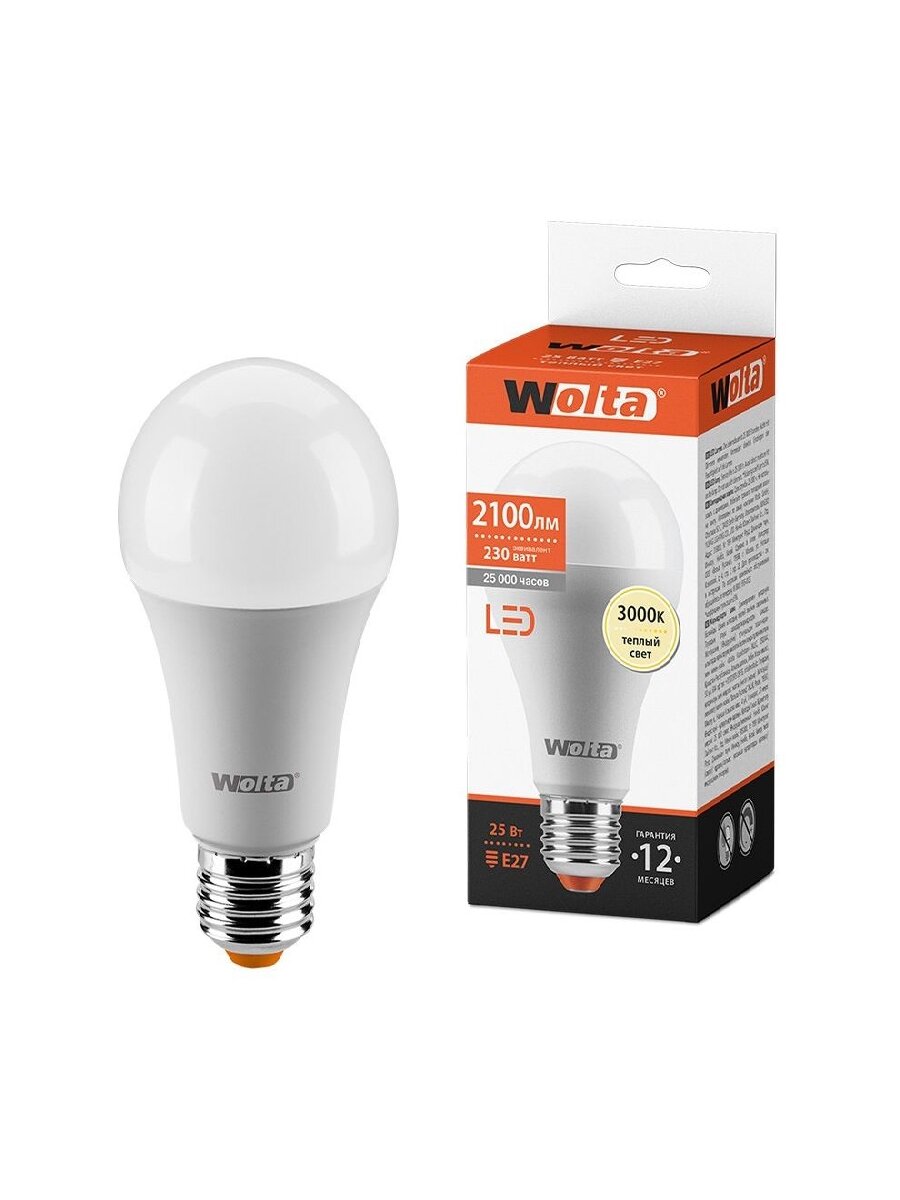 (5 шт.) Светодиодная лампочка Wolta лампа св/д ЛОН A67 E27 25W(2100Lm) 3000K 2K 138x67x67 матовая 25Y67BL25E27 Нейтральный белый. Цоколь E27: сравнение цен, характеристики, фото, актуальное наличие и цены.