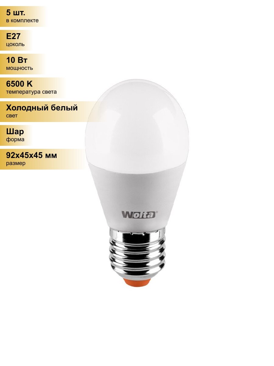 (5 шт.) Светодиодная лампочка Wolta лампа св/д шар G45 E27 10W(900Lm) 6500K 6K 92X45 25W45GL10E27 Холодный белый. Цоколь E27: сравнение цен, характеристики, фото, актуальное наличие и цены.