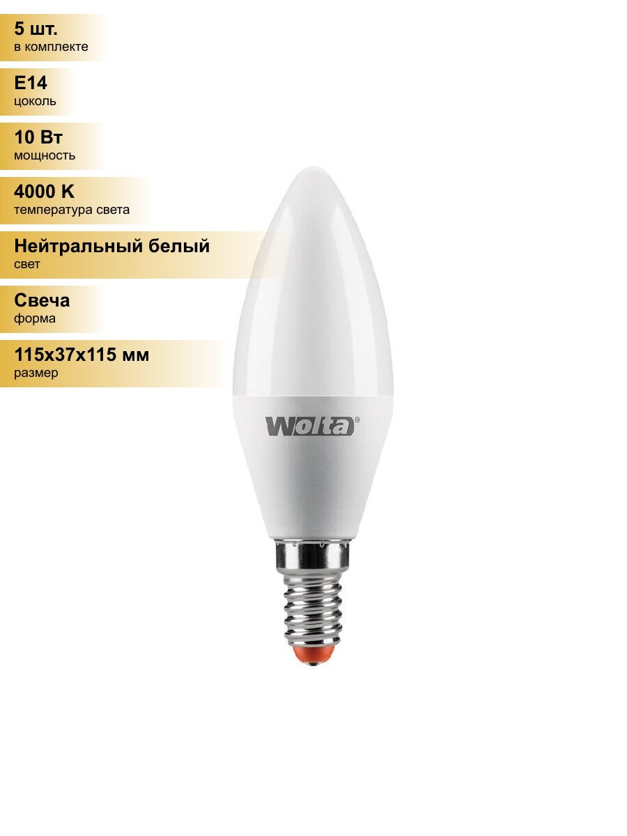 (5 шт.) Светодиодная лампочка Wolta лампа св/д свеча C37 E14 10W(900Lm) 4000K 4K 4K 115X37 25SC10E14 Нейтральный белый. Цоколь E14: сравнение цен, характеристики, фото, актуальное наличие и цены.