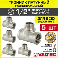 5 шт — Тройник 1/2″ ВР-НР равнопроходной VALTEC, латунный никелированный / Трехходовой фитинг ДУ 15 резьбовой для монтажа труб системы отопления и водоснабжения, арт. VTr.132. N.0004: сравнение цен, характеристики, фото, актуальное наличие и цены.