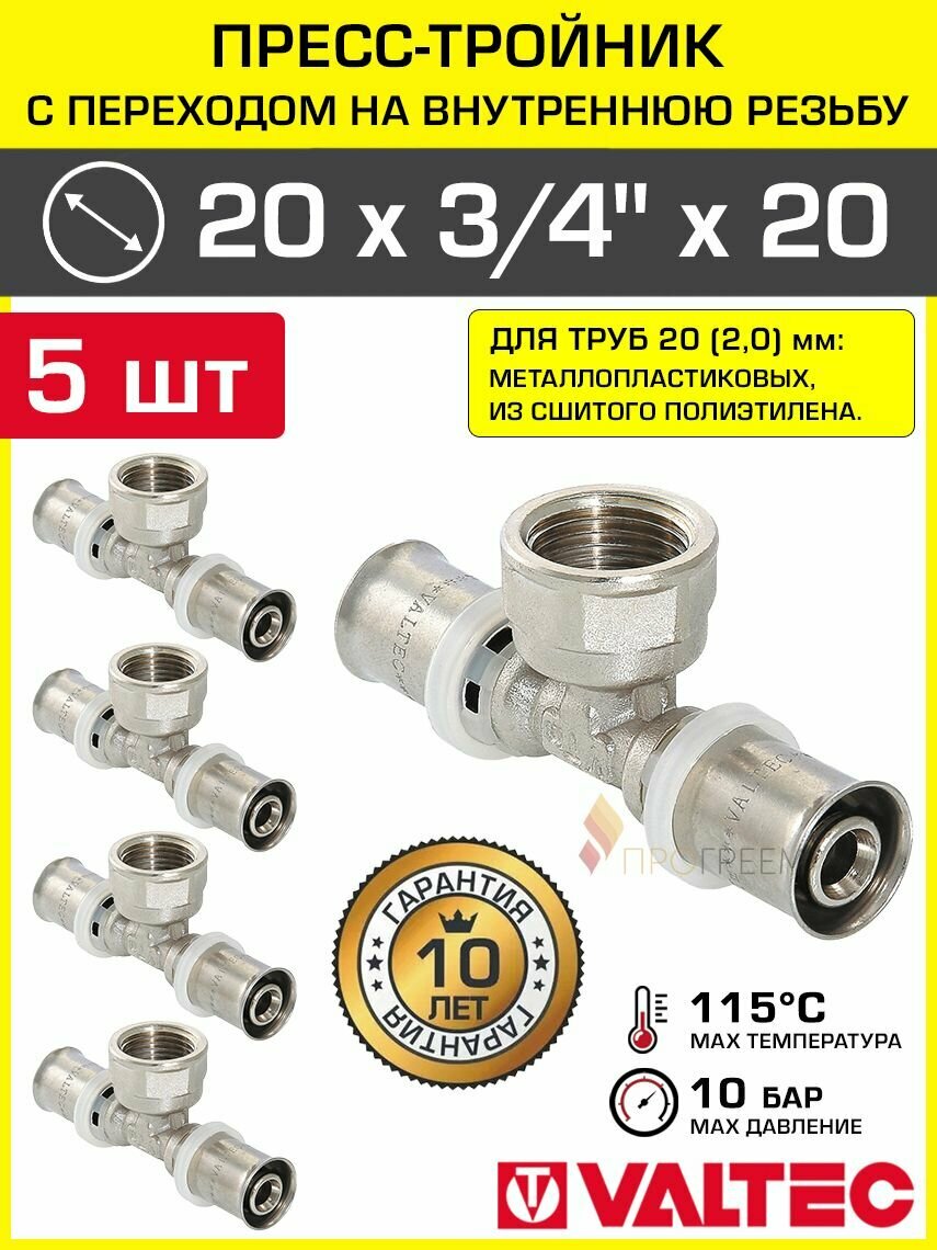5 шт — Тройник переходной 20 мм x 3/4″ вн. р. x 20 мм VALTEC / Пресс-фитинг для присоединения труб из сшитого полиэтилена и металлопластика 20(2,0) с переходом на внутренную резьбу, VTm.232. N.200520: сравнение цен, характеристики, фото, актуальное наличие и цены.
