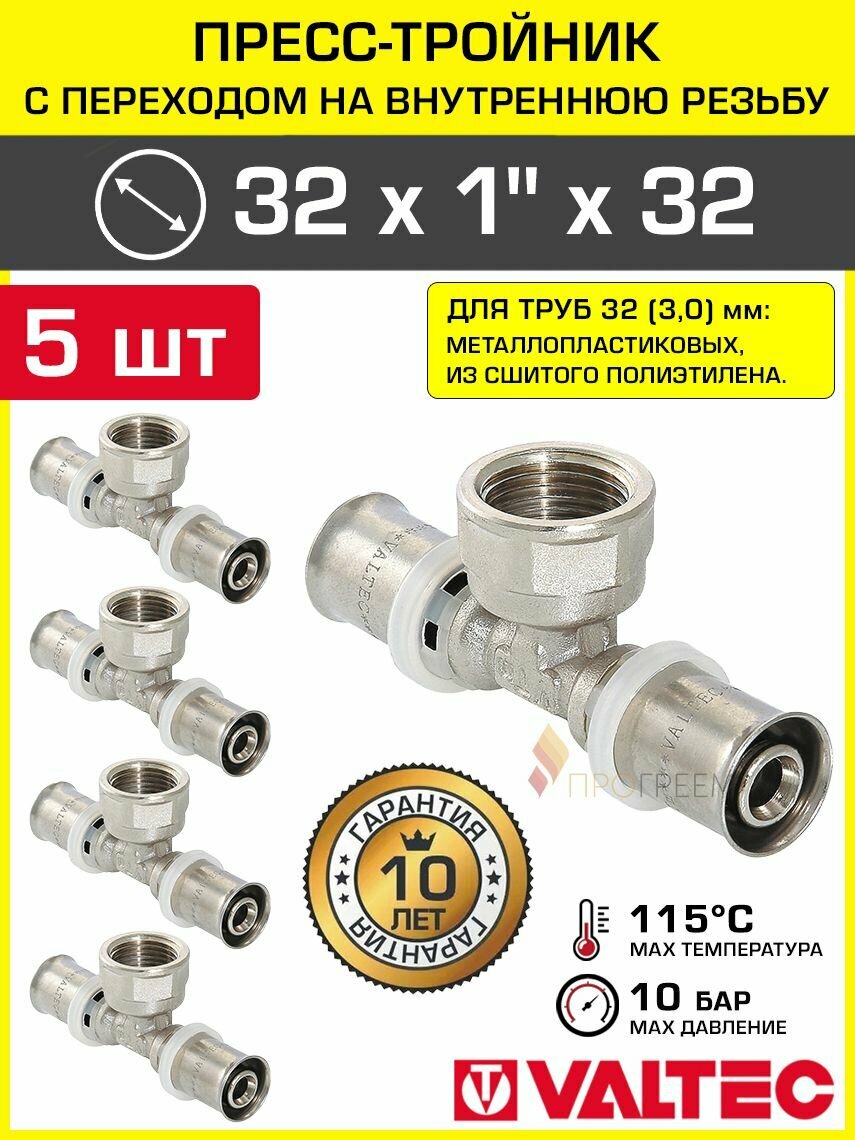 5 шт — Тройник переходной 32 мм x 1″ вн. р. x 32 мм VALTEC / Пресс-фитинг для присоединения труб из сшитого полиэтилена и металлопластика 32(3,0) с переходом на внутренную резьбу, VTm.232. N.320632: сравнение цен, характеристики, фото, актуальное наличие и цены.