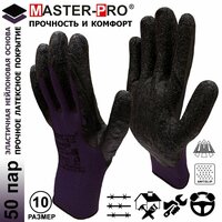 50 пар. Перчатки рабочие Master-Pro торрон-vb, нейлоновые с рельефным латексным покрытием, размер 10 (L-XL): сравнение цен, характеристики, фото, актуальное наличие и цены.