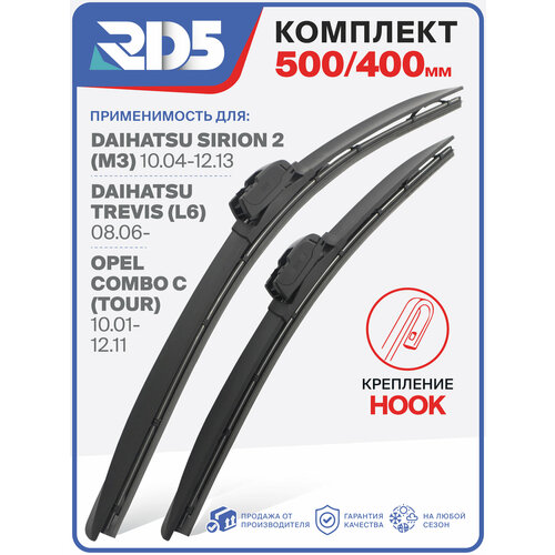 Комплект бескаркасных щеток стеклоочистителей 500 мм и 400 мм. (50 см + 40 см) с креплением Hook (Крючок).
