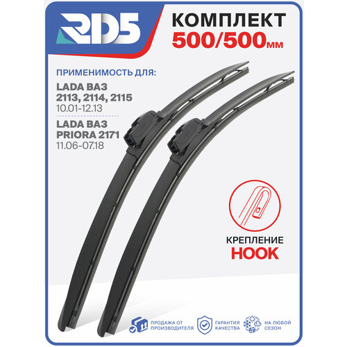 500 500 мм. Hook Крючок. Комплект бескаркасных щеток стеклоочистителя RD5 дворники на LADA ВАЗ 2113/2114/2115; лада ВАЗ 2113/2114/2115 ; Priora 2171; лада ВАЗ Приора 2171