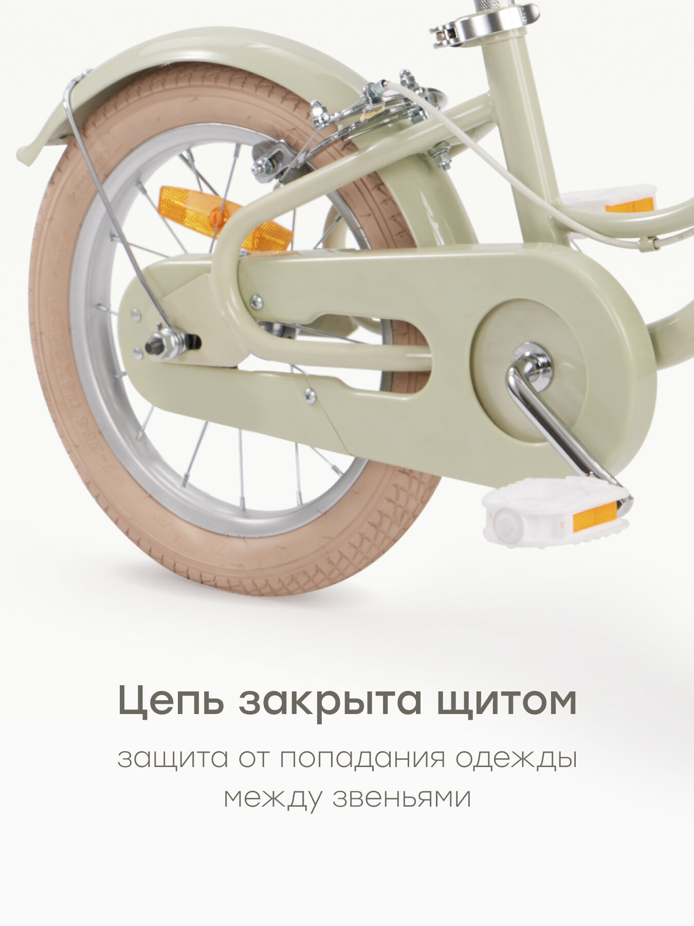 • низкая посадка • легкая рама • комфортное кожаное сиденье • ручки не скользят • защита цепи • ручной тормоз • страховочные колеса в комплекте • корзина в комплекте • высота сиденья и руля регулируются • колеса подкачиваются обычным насосом • диаметр колес 14 дюймов
