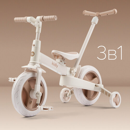 50051, Беговел-трансформер KIDLY от Happy Baby, беговел двухколёсный, четырехколёсный велосипед, 3в1, бежево-коричневый: сравнение цен, характеристики, фото, актуальное наличие и цены.