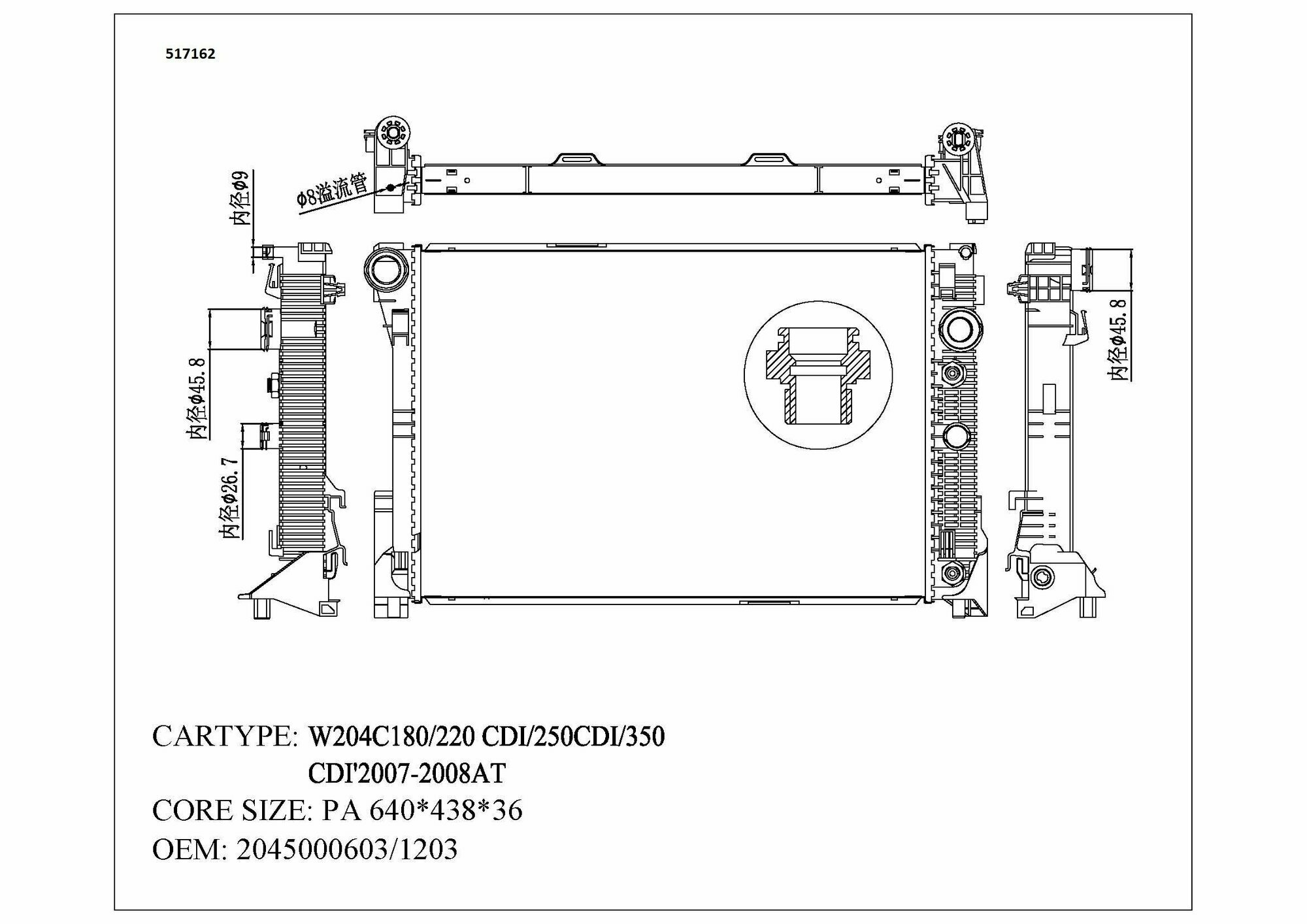 517162 Радиатор охлаждения для Mercedes C204; W204; C218; X218; A207; C207; W212; X204 2.0-5.0 (36mm)