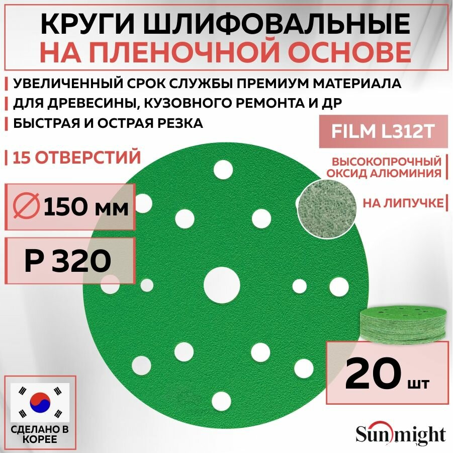 Купить 53014 Шлифовальный абразивный круг SUNMIGHT FILM L312T, диск на липучке 150 мм, P320, 15 отверстий, 20 шт кругов/упак. с доставкой по всей России.