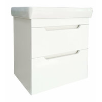 Тумба подвесная Emmy Агата 55 см с двумя раздвижными ящиками с умывальником Милан. Корпус выполнен из белого ЛДСП, фасад МДФ с пленкой ПВХ. Петли с шариковыми направляющими. Поставляетс в собраном виде.