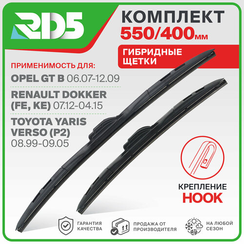 550 400 мм. Hook. Комплект гибридных щеток стеклоочистителя RD5 дворники на Opel GT B; Опель ГТ В ; Renault Dokker; Рено Доккер ; Toyota Yaris Verso; Тойота Ярис Версо