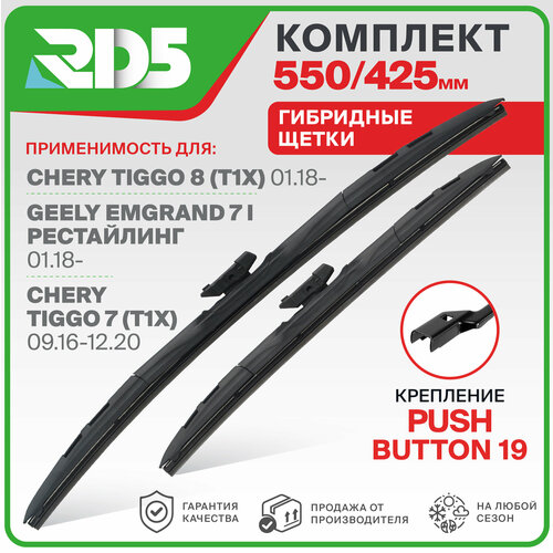Комплект гибридных щеток стеклоочистителя 550 и 425 мм (55 см + 42.5 см) . Крепление Pushbutton 19.