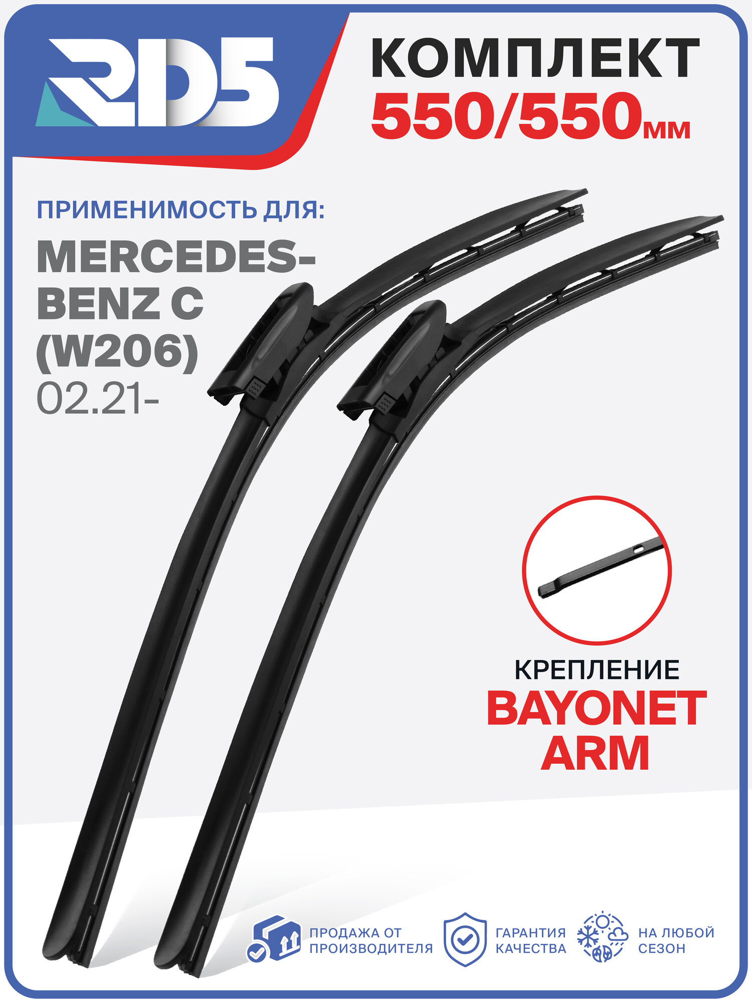 550 550 мм. Bayonet Arm. Комплект бескаркасных щеток стеклоочистителя RD5 дворники на Mercedes-Benz C; Мерседес-Бенц Ц: сравнение цен, характеристики, фото, актуальное наличие и цены.