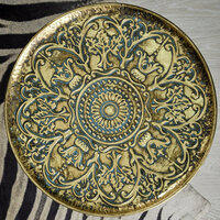 Столик интерьерный "Эфиопия" от Glasar - это уникальное сочетание африканского стиля и ручной работы. Изготовленный из железа, он имеет золотистую окраску, что придает ему особый шик и изысканность.
