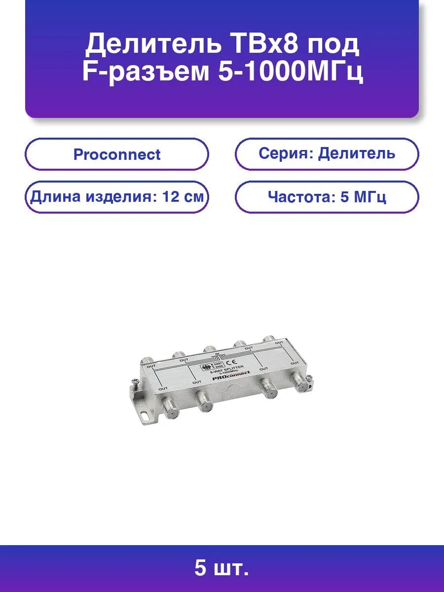 5шт. Делитель Тв х 8 под F разъём МГц: сравнение цен, характеристики, фото, актуальное наличие и цены.