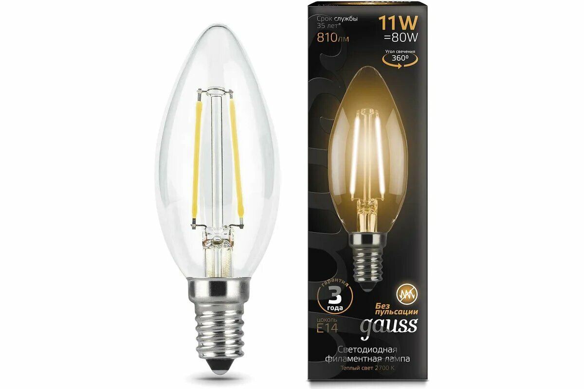 Gauss Лампа Filament Свеча 11W 810lm 2700К Е14 LED 103801111: сравнение цен, характеристики, фото, актуальное наличие и цены.
