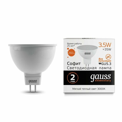 Купить 5шт/уп. Лампа LED Софит 3.5Вт 230B MR16 GU5.3 290Лм 3000К Свет Теплый белый арт. 13514 Gauss, уп. 5шт с доставкой по всей России. 5шт/уп. Лампа LED Софит 3.5Вт 230B MR16 GU5.3 290Лм 3000К Свет Теплый белый арт. 13514 Gauss, уп. 5шт: сравнение цен, характеристики, фото, актуальное наличие и цены.