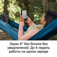 Компания Amazon представила новую версию своей самой дешевой электронной книги. Дизайн модели Amazon Kindle 2022 мало чем отличается от предшественников. Это все тот же компактный гаджет. Устройство оснащено 6-дюймовым экраном E-ink с передней подсветкой и разрешением 300 пикселей на дюйм. Габариты изделия составляют 157,8 х 108,6 х 8 мм, весит девайс 158 грамм. На выбор предлагаются два цветовых варианта: черный и синий. Новая версия Amazon Kindle получила многие функции Paperwhite, при этом она стоит дешевле. Из главных изменений стоит отметить увеличение объема встроенной памяти с 8 до 16 ГБ, наличие разъема USB Type-C вместо microUSB. Время автономной работы на одной подзарядке составляет до 6 недель. Amazon Kindle 11 — одна из самых небольших электронных книг, ее вес едва превышает 150 грамм, а габариты совсем невелики. Такой девайс удобно носить с собой и пользоваться им в любое время — в общественном транспорте, в кафе, в парке, на скамейке, пока ждешь друга, во время перелета в самолете. Рекламная версия (Special Offer). Если вы зарегистрируете устройство на сайте Amazon, то через Wi-Fi загрузится «реклама». Реклама отображается на экране устройства только в режиме ожидания в виде заставки, а также в виде небольшой картинки в меню. Во время чтения реклама не отображается, вы видите текст точно так же как на «не рекламной» модификации ридера. экран для комфортного чтения E-Ink матрица имитирует рукописный лист с чернилами, на нем комфортно читать, и сам экран не бликует при ярком свете. Изображение будет четкое благодаря высокому разрешению, а с регулируемой подсветкой вы сможете читать даже в темноте. разные форматы картинок Amazon Kindle 11 поддерживает основные форматы изображений — jpeg, png, bmp, gif, поэтому вы сможете читать комиксы или хранить фотографии в своей читалке. много текстовых форматов Скачивайте книги в разных текстовых форматам — Amazon Kindle 11 поддерживает большинство из них. Здесь вы найдете поддержку TXT-файлов, DOCX, PDF, веб-страниц HTML и специальные форматы для читалок MOBI и AZW. интернет под рукой Выход в интернет тут тоже предусмотрен — Amazon Kindle 11 получил браузер, с помощью которого вам будет легко серфить по страницам. до 40 дней без подзарядки Заряжайте свою книгу один раз в полтора месяца — Amazon Kindle 11 проработает в течение 42 дней в автономном режиме. Этот показатель может варьироваться в зависимости от того, с какой интенсивностью вы пользуетесь устройством — читаете пару часов в день или по 5-6 часов, насколько ярко работает подсветка. Характеристики Производитель Amazon Модельный ряд Kindle 2022 (11th gen) Тип электронная книга Материал корпуса пластик Размеры 157.8x108.6x8 мм Вес 158 гр Экран Диагональ 6 дюйм Размер и.