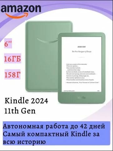 Хочешь по-настоящему погрузиться в чтение? Выбирай Amazon Kindle 2024 (11 поколение) 6" Wi-Fi 16 ГБ — не ошибёшься! Это самый лёгкий и компактный Kindle в истории: весит всего 158 грамм, легко помещается в карман или небольшую сумку, чтобы читать где и когда угодно. Читалка оснащена 6-дюймовым экраном с высокой чёткостью 300 ppi, который отображает текст и изображения кристально ясно. Без бликов, с эффектом настоящей бумаги — твои глаза скажут тебе спасибо. Подсветка стала ярче на 25%, а её максимальная яркость теперь такая же, как у Kindle Paperwhite. Плюс регулируемая подсветка и тёмный режим — читай с комфортом и днём, и ночью. Перелистывание страниц заметно ускорилось, чтение стало невероятно плавным. Никаких задержек — только ты и мир книги. Батарея держит заряд просто отлично: после одной зарядки при чтении по 30 минут в день (с выключенным Wi-Fi и подсветкой на уровне 13) Kindle проработает до 6 недель. Никаких проблем с зарядом в долгих поездках или при частых командировках! 16 ГБ встроенной памяти — это тысячи электронных книг. Словно носишь с собой целую библиотеку. А главное — Kindle создан только для чтения. Никаких отвлекающих уведомлений, писем или соцсетей. Идеальная среда для сосредоточенного чтения: будь то учебная литература для студентов или любимые книги для тех, кто хочет отдохнуть душой. Эта модель Kindle ещё и заботится о планете: корпус сделан на 75% из переработанного пластика и на 90% из переработанного магния, а 99% упаковки — это древесное волокно из лесов устойчивого управления или переработанных материалов. Такой практичный, экологичный и просто отличный гаджет для чтения точно стоит того. Почему бы не попробовать и не открыть для себя новый уровень чтения?