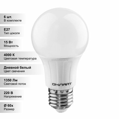 (6 шт.) Светодиодная лампочка онлайт A60 15Вт 230В 4000K E27: сравнение цен, характеристики, фото, актуальное наличие и цены.