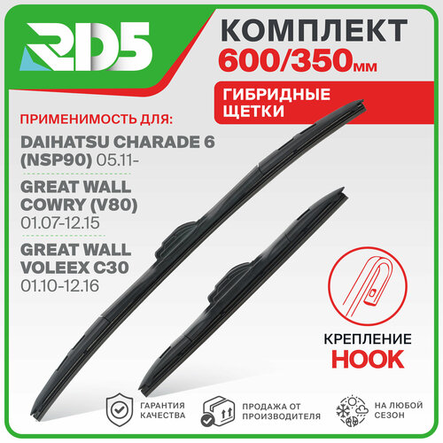 Комплект гибридных щеток стеклоочистителя 600 350 мм (60 см + 35 см). Крепление Hook.