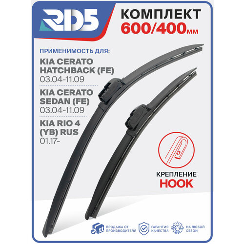 Комплект бескаркасных щеток стеклоочистителя RD5 600 мм и 400 мм. (60 см + 40 см) с креплением Hook (Крючок).