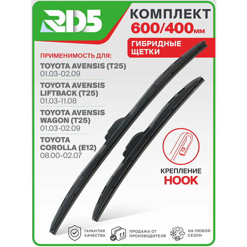 600 400 мм. Комплект гибридных щеток стеклоочистителя RD5 дворники на Toyota Avensis; Тойота Авенсис; Toyota Avensis Liftback; Тойота Авенсис Лифтбек; Toyota Avensis Wagon; Тойота Авенсис Вагон; Toyota Corolla; Тойота Королла