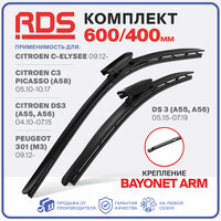 Купить 600 400 мм. Bayonet Arm. Комплект бескаркасных щеток стеклоочистителя RD5 дворники на Peugeot 301; Пежо 301 ; DS 3; ДС 3 с доставкой по всей России.