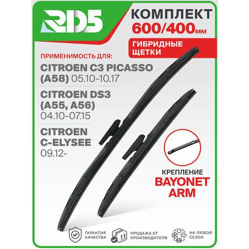 Комплект гибридных щеток стеклоочистителя 600 400 мм (60 мм + 40 мм). Крепление bayonetarm .