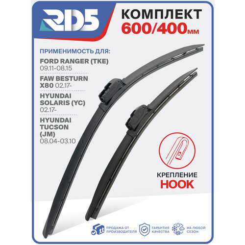 Комплект бескаркасных щеток стеклоочистителя RD5 600 мм и 400 мм. (60 см + 40 см) с креплением Hook (Крючок).