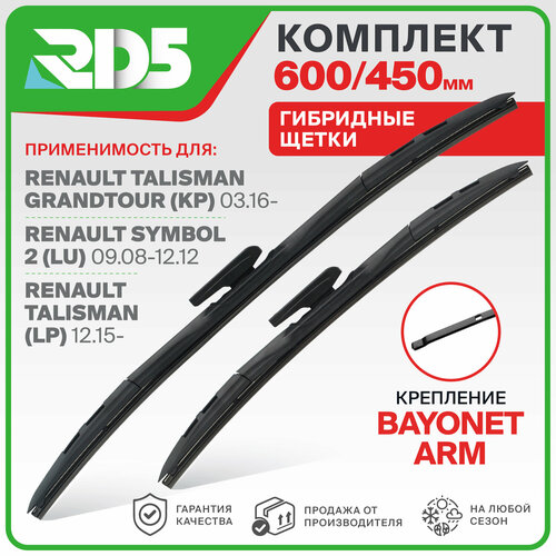 600 450 мм. Крепление Bayonet Arm. Комплект гибридных щеток стеклоочистителя RD5 дворники на Renault Symbol 2; Рено Симбол 2 ; Renault Talisman; Рено Талисман ; Talisman Grandtour; Рено Талисман Грандтур