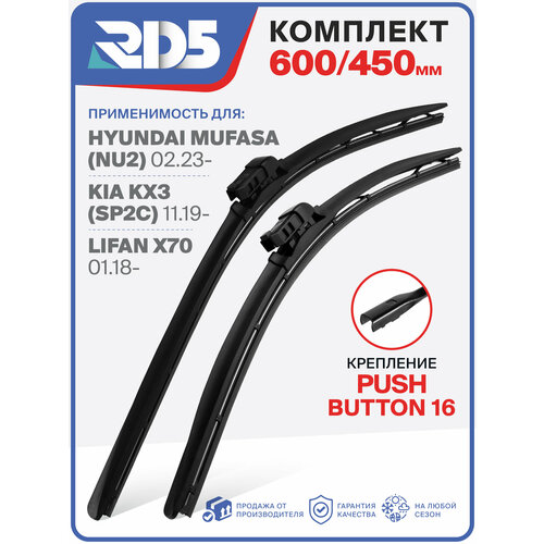 Комплект бескаркасных модифицированных щеток стеклоочистителя RD5 600 450 мм (60 см + 45 см) с креплением Push Button 16 мм. (узкая кнопка).