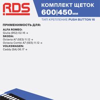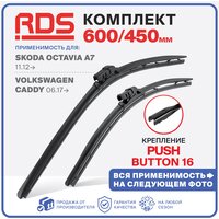 600 450 мм. Крепление Push Button 16 мм. Комплект бескаркасных щеток стеклоочистителя RD5 дворники на Skoda Octavia A7; Шкода Октавия А7 ; Octavia Combi A7; Шкода Октавия Комби А7 ; Volkswagen Caddy; Фольксваген Кэдди: сравнение цен, характеристики, фото, актуальное наличие и цены.