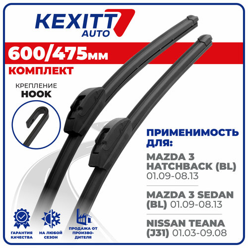 Купить 600 475 мм Комплект бескаркасных щеток стеклоочистителя дворники KEXITT Mazda 3 Hatchback ; Мазда 3 Хэтчбэк; Nissan Teana ; Ниссан Тиана с доставкой по всей России.