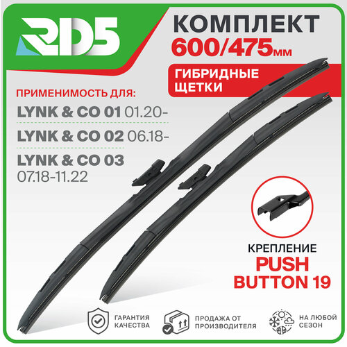 600 475 мм. Крепление Push Button 19 мм. Комплект гибридных щеток стеклоочистителя RD5 дворники на Lynk & Co 01; Линк и Ко 01 ; Lynk & Co 02; Линк и Ко 02 ; Lynk & Co 03; Линк и Ко 03