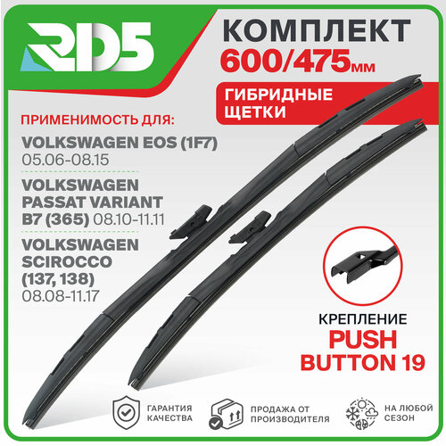 Комплект гибридных щеток стеклоочистителя 600 мм и 475 мм (60 см + 47.5 см). Крепление Push Button 19 мм.