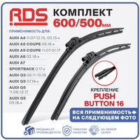 600 500 мм. Крепление Push Button 16мм. Комплект бескаркасных щеток стеклоочистителя RD5 дворники на AUDI A4; Ауди А4; AUDI A4 Allroad; Ауди А4 Оллроуд: сравнение цен, характеристики, фото, актуальное наличие и цены.