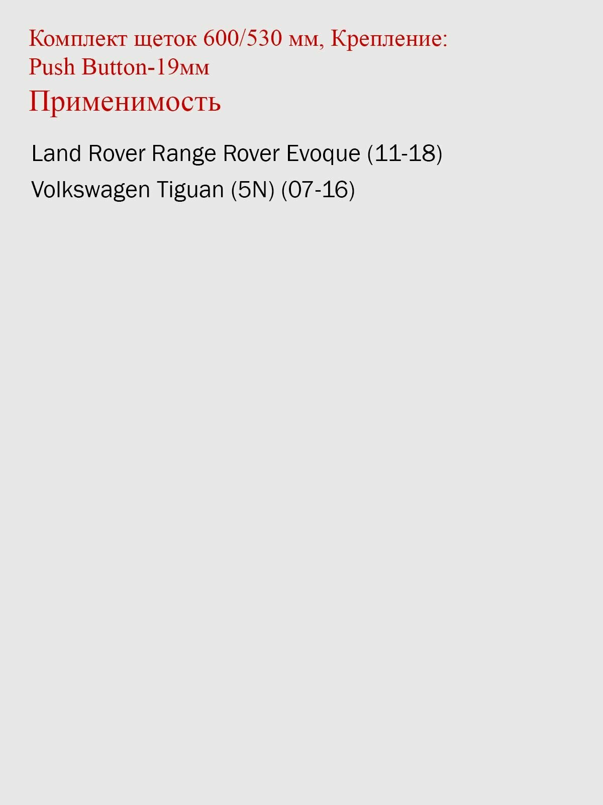 Купить 600 530мм. Дворники Щетки стеклоочистителя для Volkswagen Tiguan Фольксваген Тигуан (07-16); Land Rover Range Rover Evoque Ленд Ровер Range Rover Evoque (11-18) с доставкой по всей России.