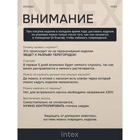 Внимание! В холодное время, при температуре ниже 0°С надувные кровати и матрасы, и любые другие надувные изделия Интекс очень «хрупкие». Места складок материала изделия, становятся не эластичными в связи с отрицательной температурой воздуха, и могут треснуть. Поэтому при получении товара (если Вы забираете его с ПВЗ транспортных компаний, почты или получаете от курьера) выдержите свою покупку не менее 4 часов при комнатной температуре, прежде, чем доставать из коробки, разворачивать и надувать изделие.