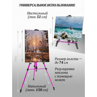 Купить 65-BS Мольберт напольный/настольный телескопический тренога метал. фиолетовый с доставкой по всей России.