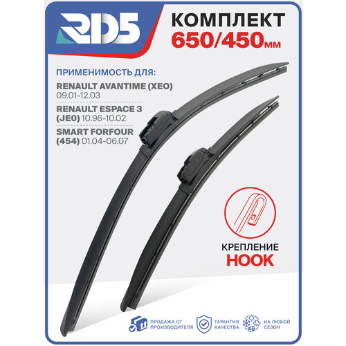 Купить 650 450 мм. Крепление Hook. Комплект бескаркасных щеток стеклоочистителя RD5 дворники на Renault Avantime; Рено Авантайм; Renault Espace III; Рено Еспэйс 3; Smart Forfour; Смарт Форфоур с доставкой по всей России. 650 450 мм. Крепление Hook. Комплект бескаркасных щеток стеклоочистителя RD5 дворники на Renault Avantime; Рено Авантайм; Renault Espace III; Рено Еспэйс 3; Smart Forfour; Смарт Форфоур: сравнение цен, характеристики, фото, актуальное наличие и цены.