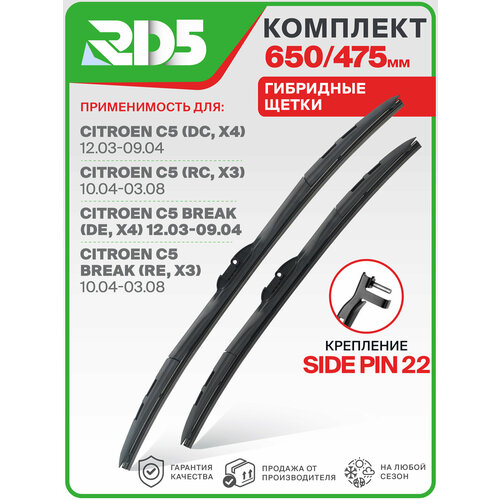 Комплект гибридных щеток стеклоочистителя 650 и 475 мм (65 см + 47.5 см). Крепление Side Pin 22.