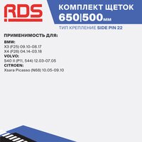 650 500 мм. Крепление Sidepin 22. Комплект бескаркасных щеток стеклоочистителя RD5 дворники на BMW X3; БМВ Икс3; BMW X4; БМВ Икс4; Volvo S40 II; Вольво С40 2: сравнение цен, характеристики, фото, актуальное наличие и цены.