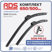Купить 650 500 мм. Крепление Sidepin 22. Комплект бескаркасных щеток стеклоочистителя RD5 дворники на BMW X3; БМВ Икс3; BMW X4; БМВ Икс4; Volvo S40 II; Вольво С40 2 с доставкой по всей России.