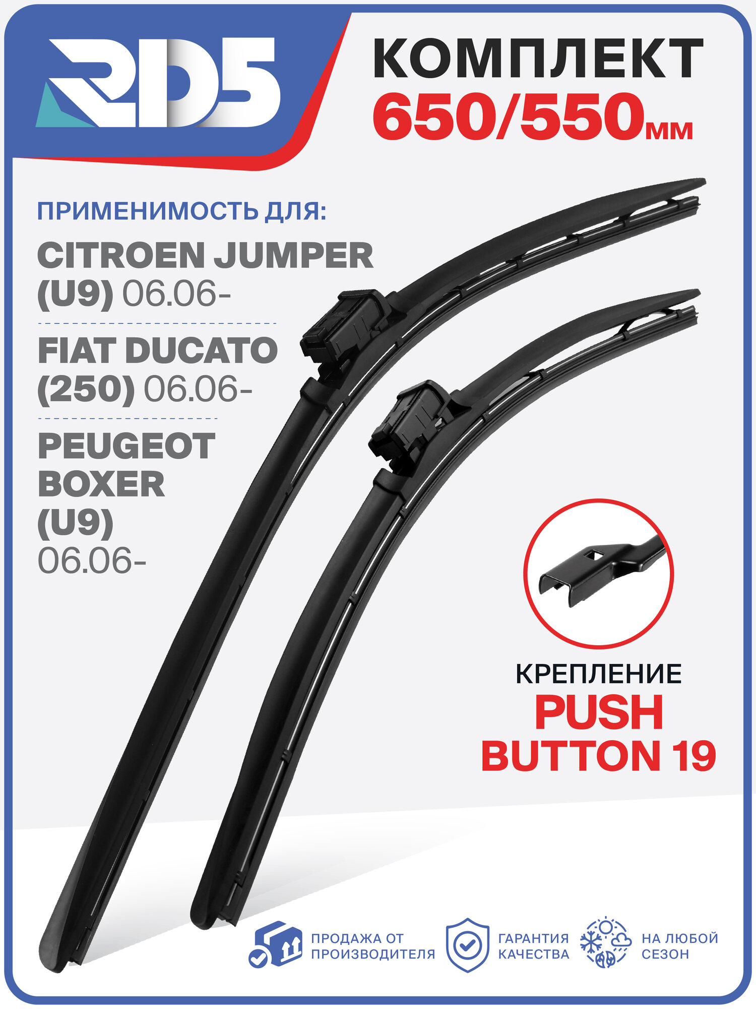 650 550мм. Крепление Pushbutton 19. Комплект бескаркасных щеток стеклоочистителя RD5 дворники на Citroen Jumper Ситроен Джампер, Fiat Ducato Фиат Дукато, Peugeot Boxer Пежо Боксер: сравнение цен, характеристики, фото, актуальное наличие и цены.
