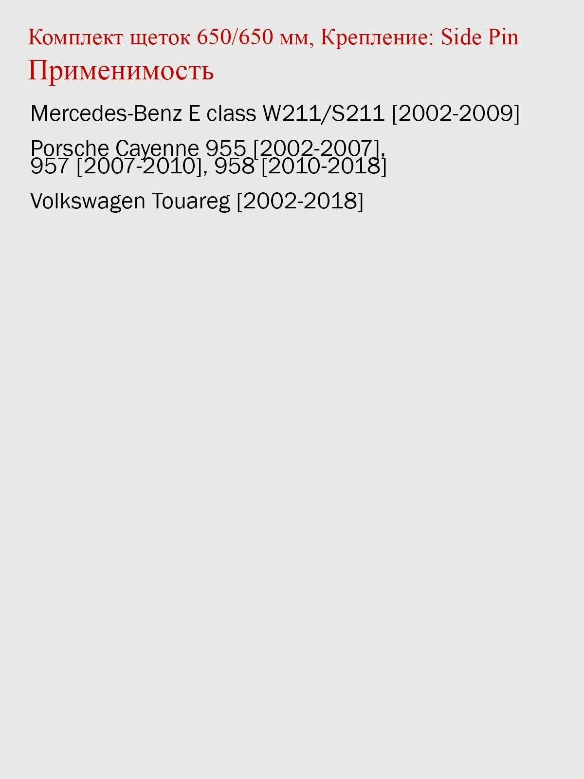 650 650мм. Дворники Щетки стеклоочистителя для Mercedes-Benz E class Мерседес Е-класс (02-09); Porsche Cayenne Порше Кайен (02-18): сравнение цен, характеристики, фото, актуальное наличие и цены.