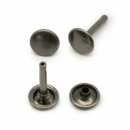 Металлические хольнитены используются, чтобы укрепить швы сумках. Позволяют соединять детали в труднодоступных местах и закрепить мелкие элементы. Эти заклепки состоят из двух частей: шляпки и ножки. После установки выглядят одинаково и с лицевой, и с изнаночной стороны. Чтобы правильно выбрать длину ножки, нужно знать толщину предполагаемого шва. Хольнитены изготовлены из металла высокого качества, прочные, не гнутся, сохраняют цвет и не подвержены коррозии, выдерживают все стандартные нагрузки. Для установки данной фурнитуры потребуется специальный пресс и насадка-пуансон. Ответные части заказываются отдельно. Цвет: серебро. Материал: сталь. Размер: d12 мм, h20 мм. Страна происхождения: Греция