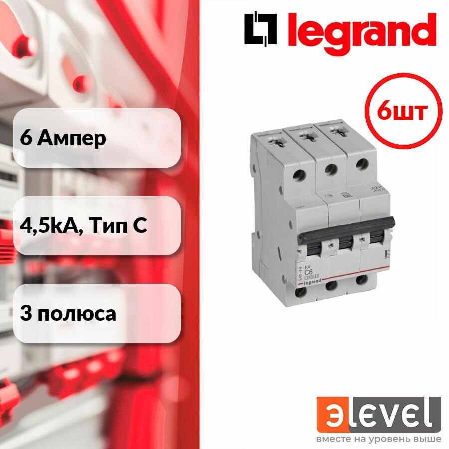 6шт. Legrand RX3 Автоматический выключатель 3P 6А (C) 4,5kA, 419705: сравнение цен, характеристики, фото, актуальное наличие и цены.